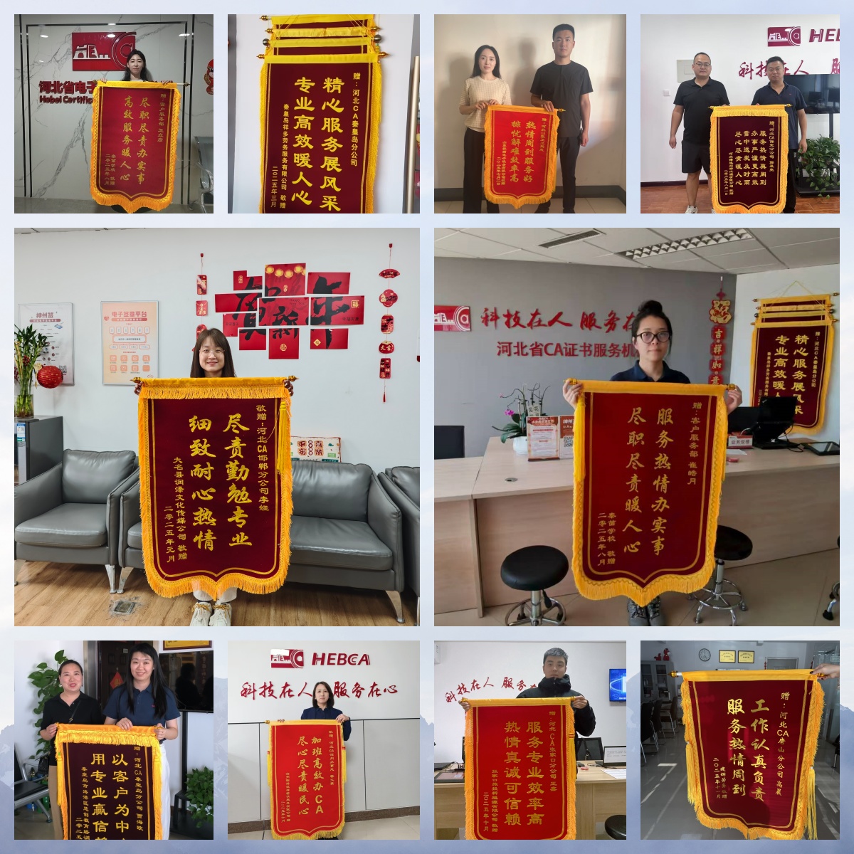 每一面錦旗,都承載著一份認可;每一封表揚信,都凝聚著一份信賴。這些贊譽,不是終點,而是我們深耕服務的新起點。作為掌握國產(chǎn)密碼算法體系的高新技術企業(yè),河北CA始終秉承“科技在人,服務在心”的文化理念,將客戶需求放在首位,優(yōu)化服務流程、提升服務質量,讓專業(yè)更有溫度,讓服務更具質感。